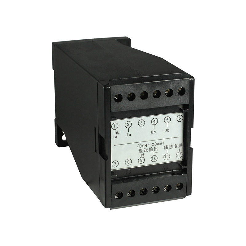 模擬量變送輸出可選:DC0~20mA、DC4~20mA、DC0~5V、DC0~10V等。模擬量變送輸出與輸入信號隔離,成線性對應(yīng)關(guān)系,廣泛用于PLC、DCS等采集。功率因數(shù)與模擬量輸出的對應(yīng)關(guān)系:C0.5~1~L0.5對應(yīng)DC4~12~20mA或0.5~1對應(yīng)DC4~20mA。精度0.5級;電流輸出時,負載電阻<500Ω、電壓輸出時,負載電阻>100KΩ。