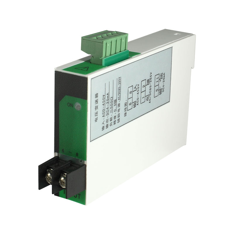 單相交流電壓變送器,是一種將電網(wǎng)中的電壓參數(shù),經(jīng)隔離變送成線性的直流模擬信號(hào)的裝置。模擬量可選:DC0~20mA、DC4~20mA、DC0~5V、DC0~10V等變送輸出。高精度測(cè)量單相交流電壓,精度達(dá)0.5%。RS485通信接口,采用國(guó)際標(biāo)準(zhǔn)Modbus-rtu通訊協(xié)議,可與各種PLC、HMI、組態(tài)軟件實(shí)現(xiàn)組網(wǎng)。