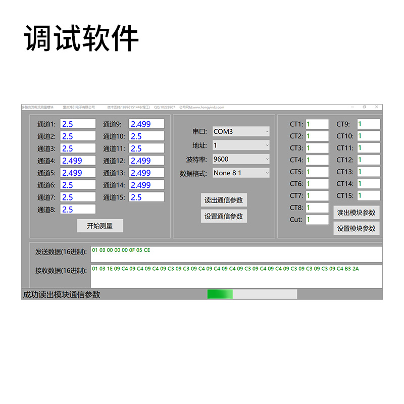 儀表地址,波特率,數(shù)據(jù)格式通信電流模塊上位機軟件設(shè)置或出廠前按用戶要求設(shè)置好參數(shù)。電流采集模塊上位機軟件也可作為調(diào)試軟件,可以讀出15個電流通道的電流值。